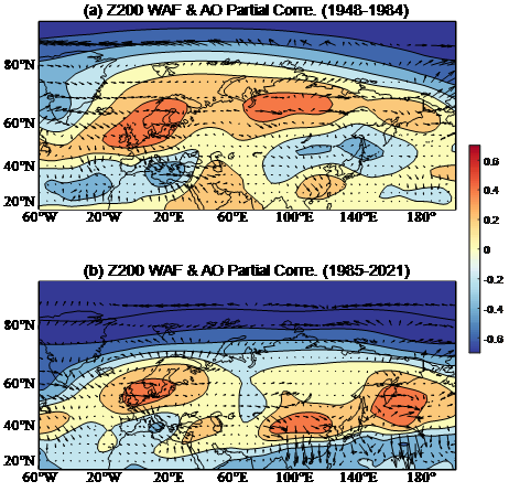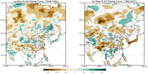 进一步的研究(Luo W. et al.,2024)证实热带太平洋-大西洋跨洋盆海温偶极子异常还可以通过影响大气环流异常形成在年际时间尺度上北美夏季风和北非夏季风之间的正相关关系(图28),从而产生北美夏季风与北非夏季风在年际变异上的显著同步性。