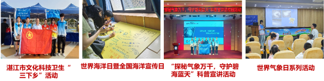 科普活动:联合举办“秘气象万千,守护碧海蓝天”海洋大气科普活动、2024年世界气象日系列活动、世界海洋日暨全国海洋宣传日,参加湛江市2024年文化科技卫生“三下乡”活动,助力乡村振兴等。截止目前,本年度科普活动已经组织开展20余场次,参与本科生和研究生达100人次,受益听众群体超过1200多人次。学科科普活动在“2024年全国气象科普讲解大赛”(志愿传播赛道)和“第十三届全国气象科普优秀作品评选”(音视频类)中均获三等奖。有效提升了大众对海洋科学的兴趣与认知,助力海洋科学精神的传播与社会服务功能的深化,为文化传承与公众科学素养的提升作出了积极贡献。