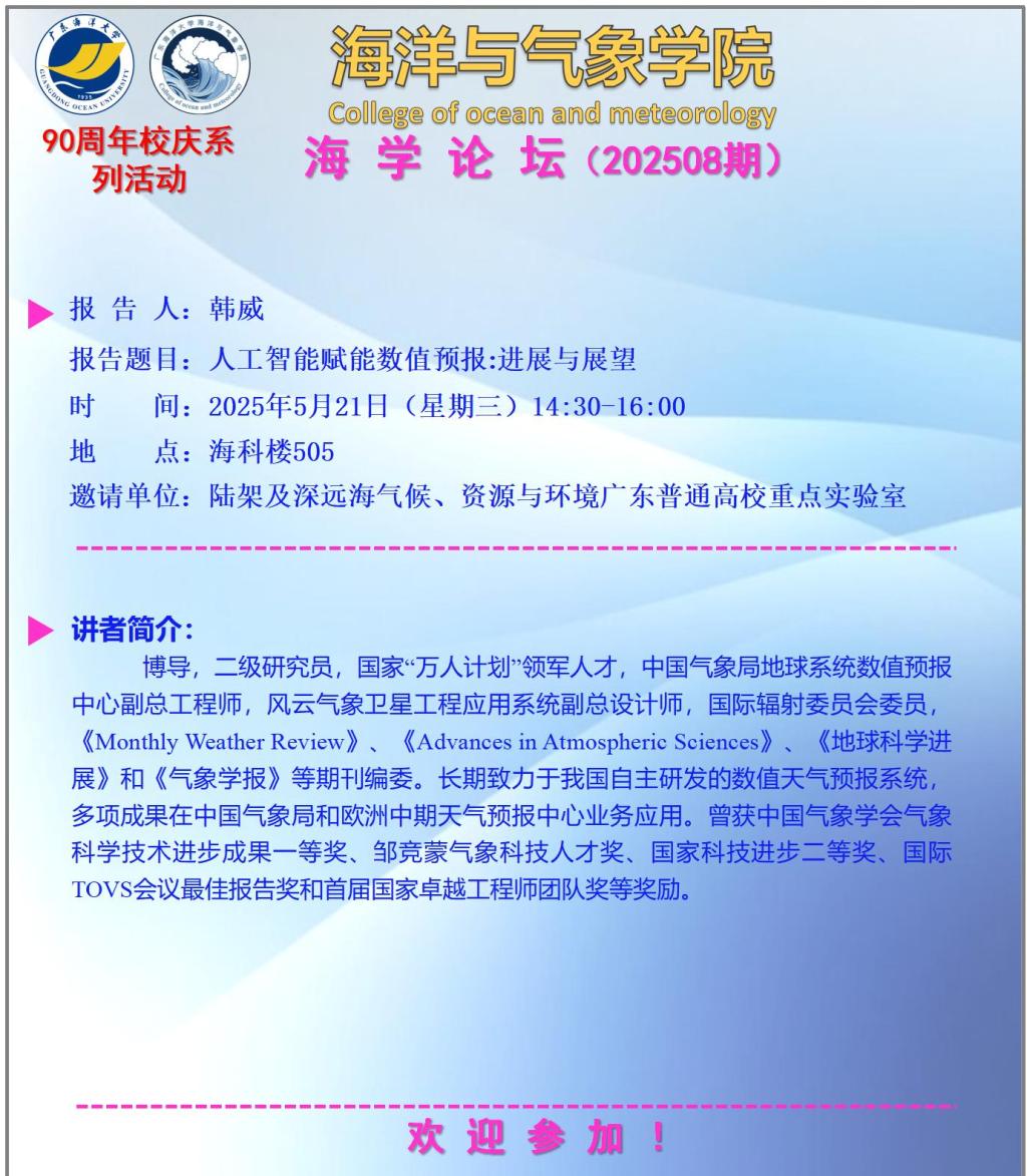 【学术会议通知】william威廉中文官网“海学论坛”(202508期)