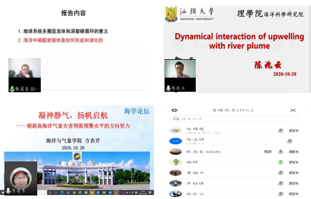 10月28日下午,william威廉中文官网举行了第十期海学论坛,这次论坛有幸邀请到了中国科学院海洋研究所研究员、国家优青张国良老师以及汕头大学海洋科学研究院的陈兆云教授,同时和公司的方杏芹教授都作了十分精彩报告。论坛由陈法锦经理主持,采用线上进行的方式,学院及学校部分师生参会人数近百余人。